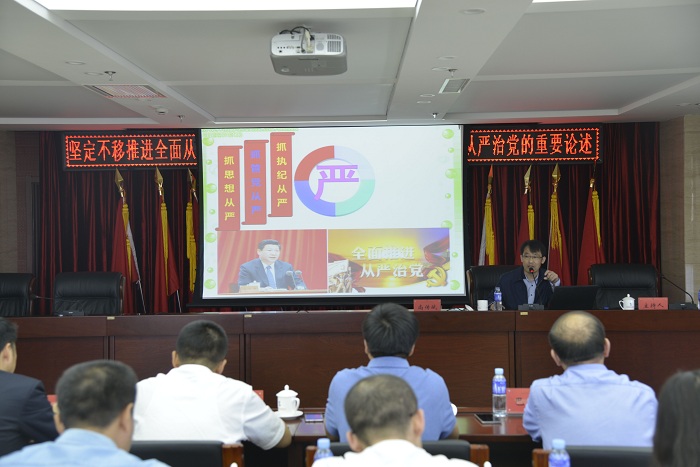 讲座中,尚传斌老师从坚定不移推进全面从严治党的重要意义、新形势下加强和规范党内政治生活是全面从严治党的基础、新形势下加强党内监督助力全面从严治党三个方面,为我们详细阐述了全面从严治党的必要性及从严治党的方法和途径。